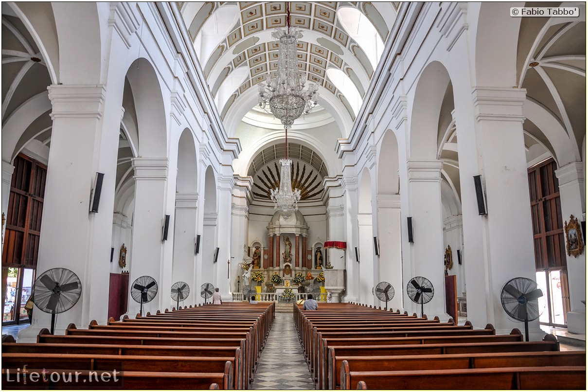 The Cathedral Basilica of Santa Marta is a Catholic church with a bell tower & an interior lined with religious paintings & statues.